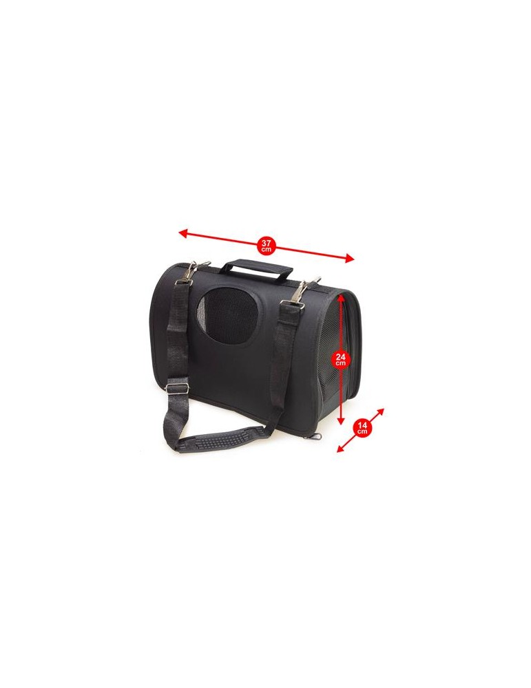 Semi-rigid bag with handle, briefcase for transporting pets and removable shoulder strap. Entries at the end by zippers, ventilation mesh. Assembled all in one piece.