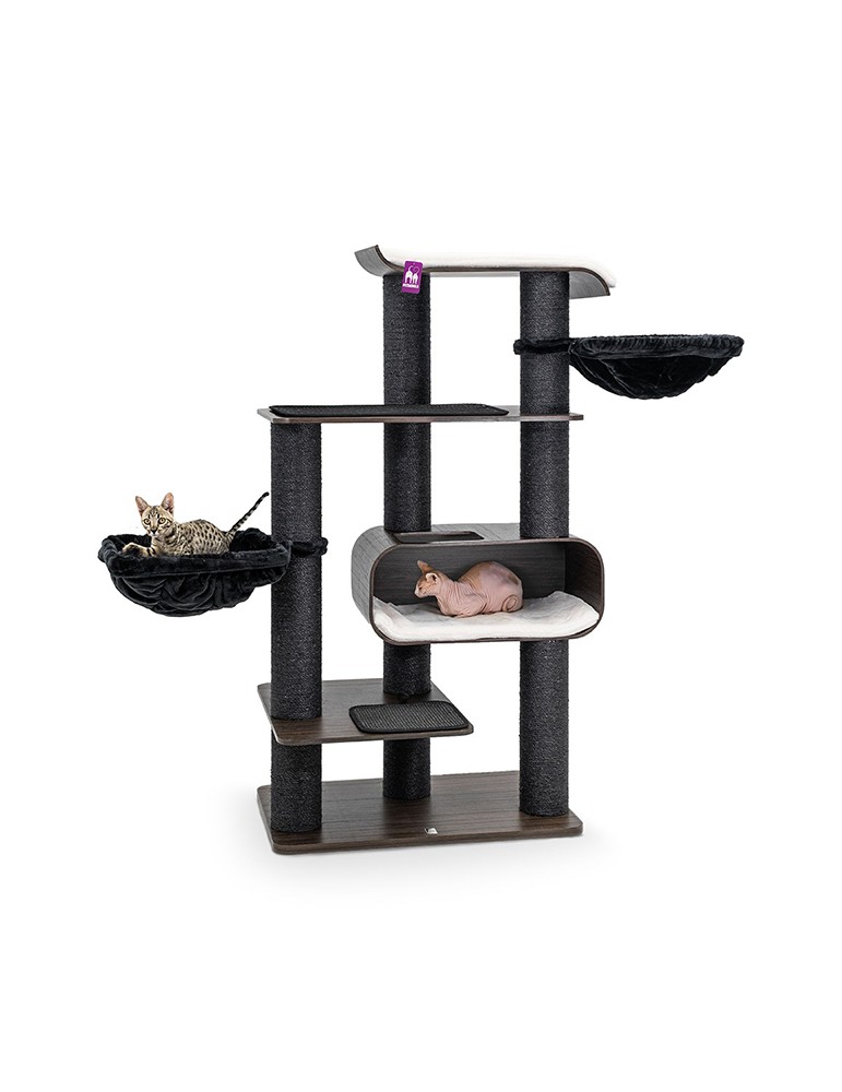 The Virgo 173 is truly a super-modern scratching post that looks great in your living room. This scratching post is tall and a real eye-catcher in your home – it is beautiful, luxuriously finished and, thanks to the matching colours, it fits in with any interior. But importantly of course, this scratching post is a treat for cats. Really everything your cat needs is on it: an XXL lounge basket on top, two soft wash-out hammocks to relax in and a nice big cat house. All with soft plush and nice thick sisal to scratch on. This is the perfect scratching post for your cat! confidence is.