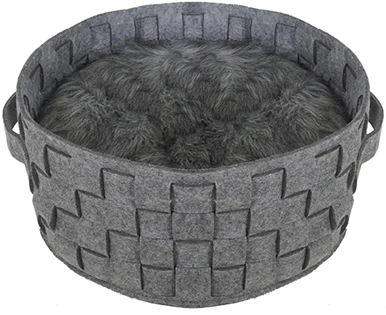 Modern round bed suitable for dogs and cats. The cushion inside is reversible with both sides covered with plush material providing a comfortable environment to rest your pet. The removable inner cushion is machine washable at 30˚, the main bed can be wiped clean.
